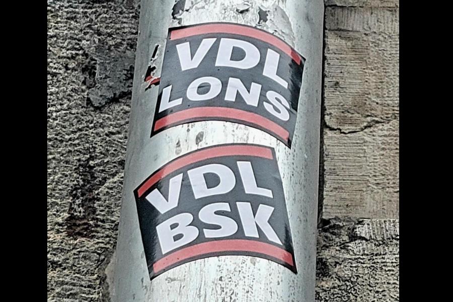 Depuis quelques années, une marque singulière est apparue au sein des visuels nationalistes, identitaires et néonazis. La plupart des supports issus de telles mouvances sont ainsi désormais composés de deux lignes de triples lettres avec une barre rouge en haut et en bas, comme à travers le sigle « FCK AFA » (« j’emmerde les antifascistes ») [7]. Les premières occurrences sont relevées dans la presse allemande en 2016, avec l’inscription « HKN KRZ » (« hakenkreuz », « croix gammée ») [8]. Ce style a depuis été largement diffusé, mais n’est plus exclusif à l’extrême droite, puisqu’on le retrouve dans d’autres usages, de formules anti-flics (« FCK CPS » – « fuck cops ») au renversement à gauche (« FCK NZS » ou « FCK FAF », pour « fuck nazis » et « fuck fafs »). Dans la région, les rares reprises restent surtout cantonnées aux néonazis dont les « Vandal Besak » et « Vandal Lons » très portés sur leur auto-promotion par ce biais (« VDL BSK » et « VDL LONS ») [7] [9]. Mais en-dehors de cet emploi précis, la découverte d’une telle typographie en Franche-Comté nécessite une lecture et interprétation poussée, étant donné qu’on la retrouve par exemple chez les étudiant·e·s opposé·e·s au changement de statut de leur université (« FCK EPE ») [10].
